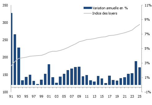 Évolution des loyers en Suisse selon l’indice de l’OFS