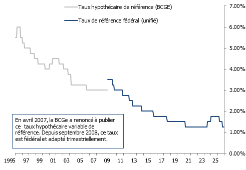 Depuis de nombreuses années, locataires et propriétaires avaient pris l’habitude de recourir à un taux hypothécaire variable pour définir l’admissibilité des variations de loyers. Il a été d’usage, jusqu’en 2008, que ce taux hypothécaire variable, dit « de référence », soit publié par les banques cantonales. À Genève, il était mis à disposition par la BCGE depuis 1920.